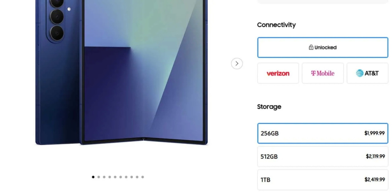 Якщо раніше модель Galaxy Z Fold 7 з об'ємом постійної пам'яті 1 Тбайт пропонувалася в США за $2419, то тепер смартфон продається за $2499. Модель з 512 Гбайт пам'яті також подорожчала на $80. Тепер замість $2119 вона пропонується за $2199. В даний момент смартфон в США можна придбати зі знижкою за $2079, пише 9to5Google.