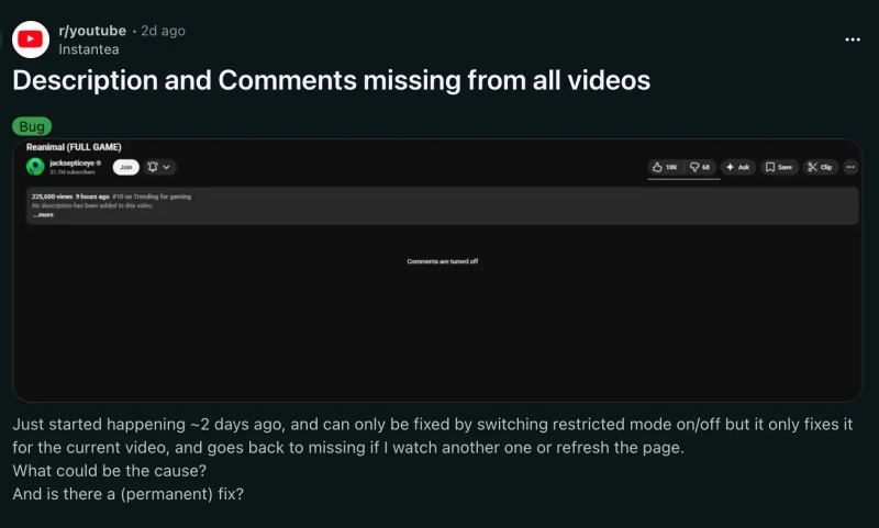 Користувачі браузерів з вбудованими блокувальниками реклами, таких як Brave і Vivaldi, також повідомляють про подібні проблеми. Те, що причиною відключення коментарів і описів відео стали свідомі дії YouTube, підтверджують численні повідомлення на форумах і в соціальних мережах. Користувачі стверджують, що коментарі та описи повертаються після відключення блокувальників реклами.