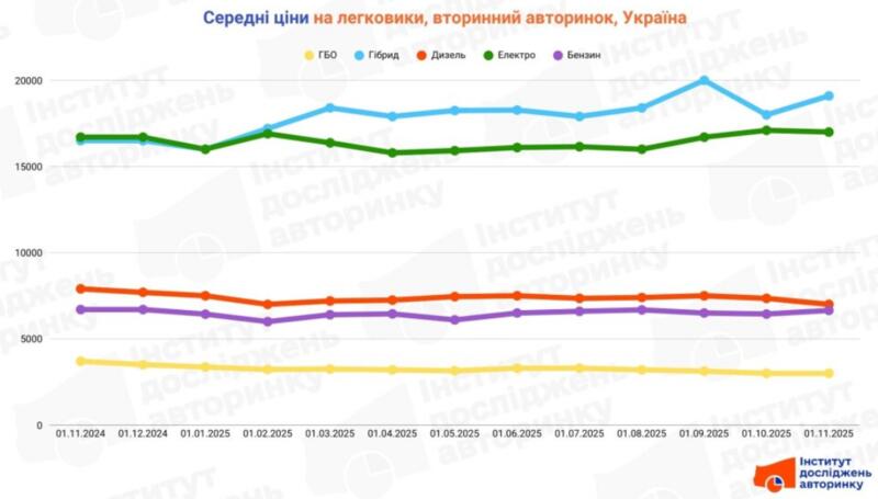 Сегмент електрокарів показує несподівану динаміку. Після весняного падіння середньої ціни до 15 800 доларів, вона поступово зросла до 17 000 доларів у листопаді. Причина — очікуване повернення ПДВ на імпорт електромобілів з 2026 року. Це спонукає ринок коригувати ціни вже зараз, готуючись до нових умов.