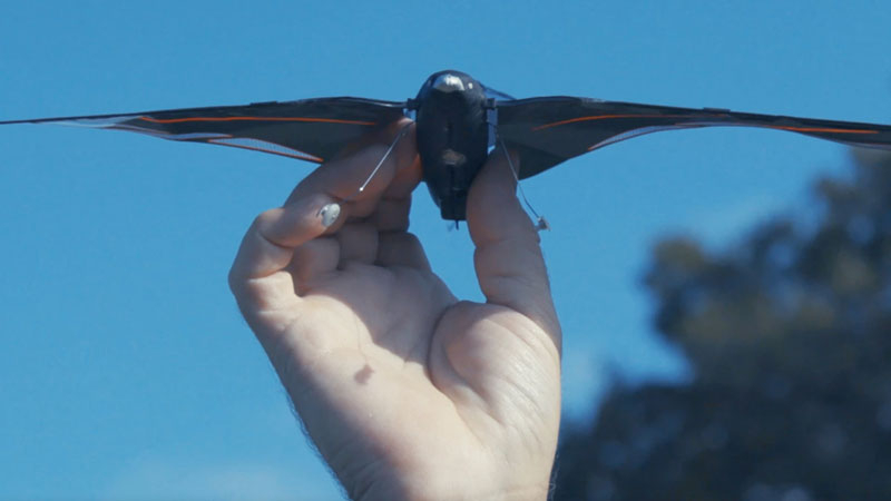 Робо-птиця важить всього 10,9 грама, виконана з легкого спіненого поліпропілену, вуглецевих стержнів та титану, що забезпечує високу міцність і стійкість до аварій. Час польоту від одного заряду складає 10–12 хвилин, а дальність управління досягає 150 метрів.