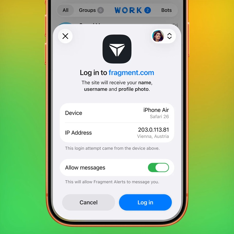 З оновленням з'явилася можливість авторизації через Telegram в додатку або на сайті. Можна поділитися з сайтом або ботом своїм номером телефону, щоб обійтися без перевірки, а також дозволити сервісу писати собі в Telegram, щоб отримувати від нього сповіщення прямо в додатку.