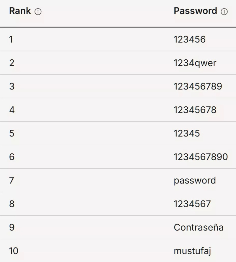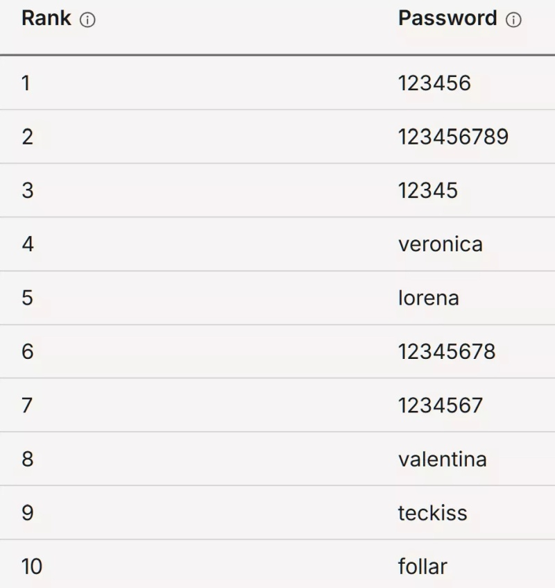 NordPass зазначає, що варіації найпоширеніших імен та прізвищ у кожній країні часто зустрічаються в списках найпопулярніших паролів регіону, наприклад, kristian123. Той факт, що «12345» або «123456» були найпоширенішими серед усіх поколінь, — сумно знайома картина. А пароль «123456» десятиліттями займає почесну першу стрічку в списках найпопулярніших паролів усіх країн і народів.